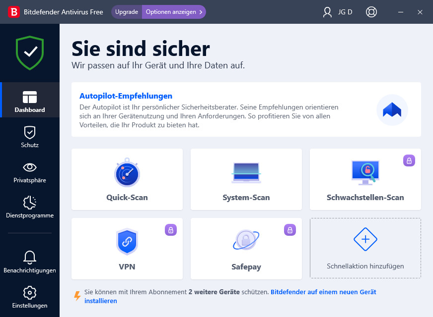 - VPN: Verschlüsseln Sie Ihren Online-Datenverkehr und surfen Sie anonym mit dem kostenlosen VPN. Dies erhöht Ihre Sicherheit, insbesondere in ungesicherten WLANs.