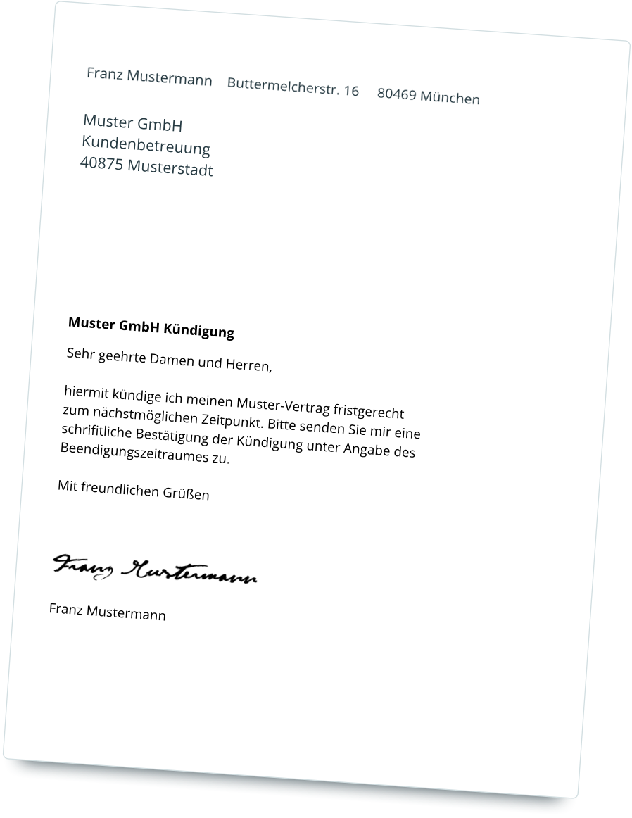 Für eine reibungslose Kündigung sollten folgende Angaben in Ihrem Schreiben enthalten sein: