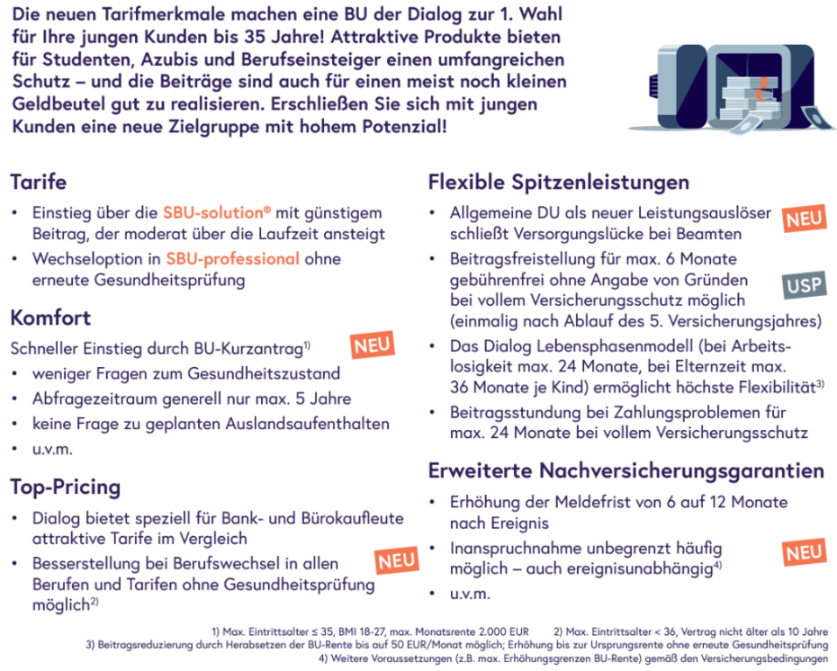 Mit diesem umfangreichen Katalog an Ereignissen stellt die Dialog sicher, dass Ihre Absicherung mit Ihrem Leben Schritt halten kann.