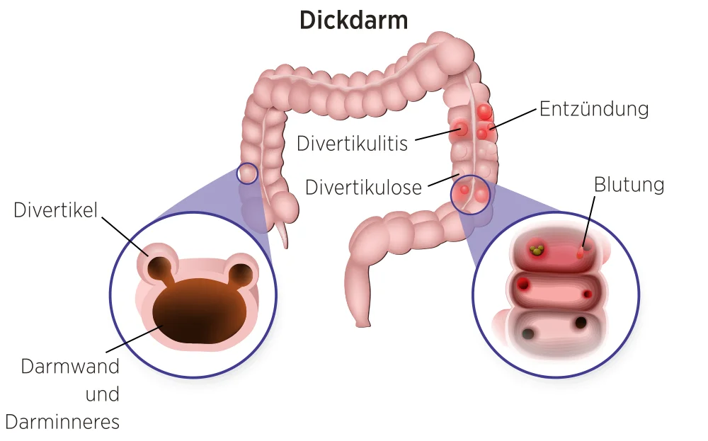 Divertikel sind kleine, sackartige Ausstülpungen, die sich vor allem im Dickdarm (Kolon) bilden können. Das Vorhandensein dieser Divertikel wird als Divertikulose bezeichnet. Divertikulitis tritt auf, wenn sich ein oder mehrere dieser Divertikel entzünden oder infizieren. Dies geschieht häufig, wenn Stuhl oder unverdaute Nahrungsreste den Ausgang der Divertikel blockieren. Obwohl Divertikel häufiger nach dem 40. Lebensjahr auftreten, verursachen sie zunächst selten Beschwerden.