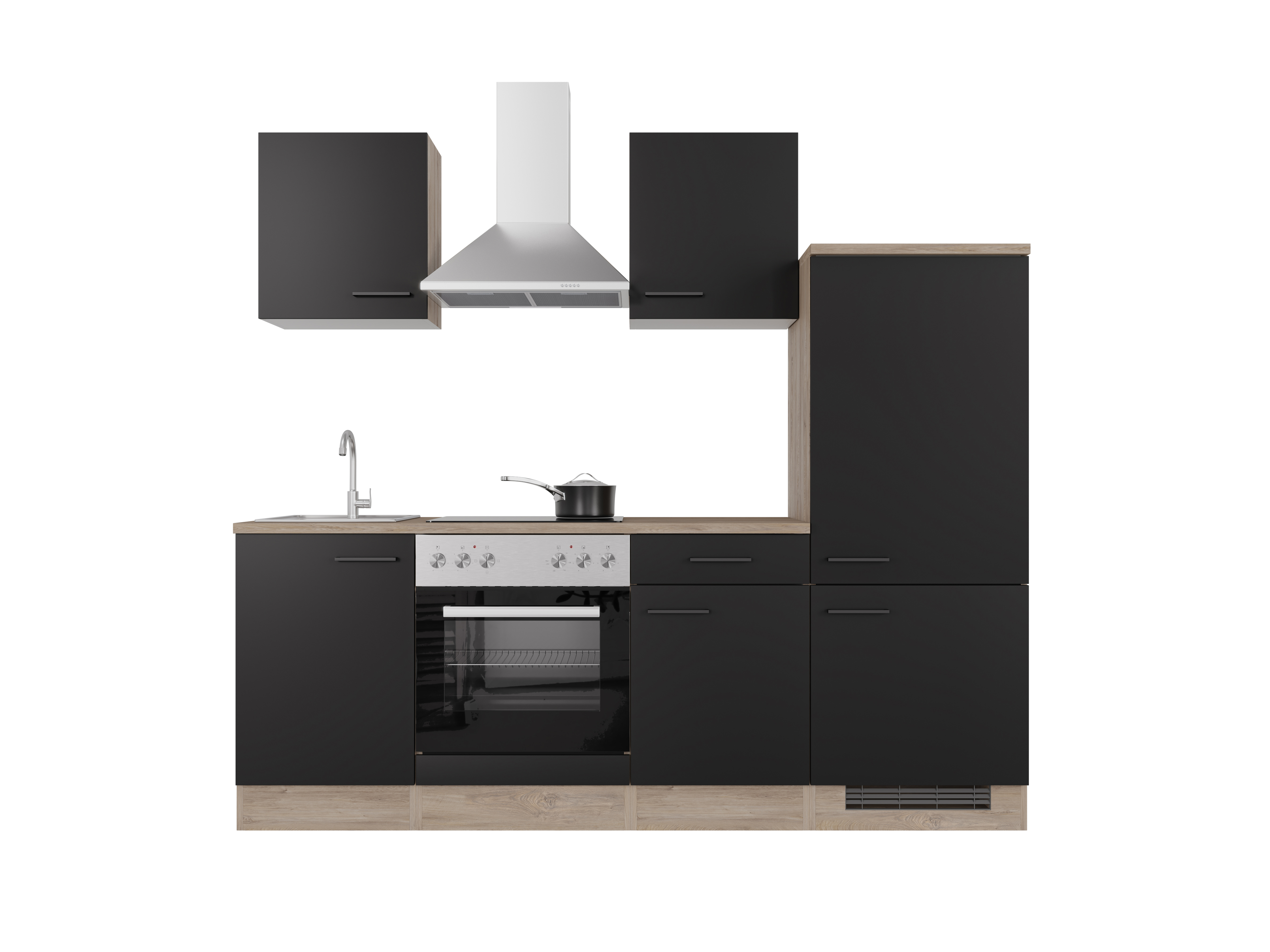 Die Auswahl an Küchenzeilen mit Elektrogeräten deckt eine Vielfalt an Stilen und Designs ab, um jedem Geschmack gerecht zu werden. Ob zeitlose weiße Hochglanzfronten, rustikale Holzoptiken oder lebendige farbige Akzente – die Möglichkeiten sind vielfältig. Zweifarbige Küchenzeilen liegen im Trend und schaffen interessante visuelle Kontraste. Bei der Materialauswahl kommen robuste Holznachbildungen wie Eiche oder Akazie zum Einsatz, die für den täglichen Gebrauch bestens geeignet sind. Die Fronten können auch mit Glaselementen kombiniert werden. Die Elektrogeräte, die Einbauspüle und die Dunstabzugshaube sind in der Regel aus langlebigem Edelstahl gefertigt, während Kochfelder aus robustem Spezialglas bestehen. Viele moderne Küchenzeilen verfügen über einen Backofen, der auf einer angenehmen Arbeitshöhe integriert ist.