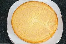 Den Tortenboden lässt Du vollständig auskühlen, drehst ihn herum und legst ihn auf Deine Tortenplatte. So hast Du die glatte Fläche oben.