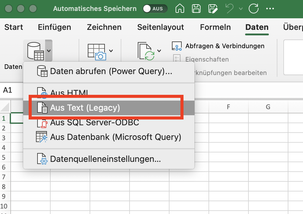 Datenimport in Excel