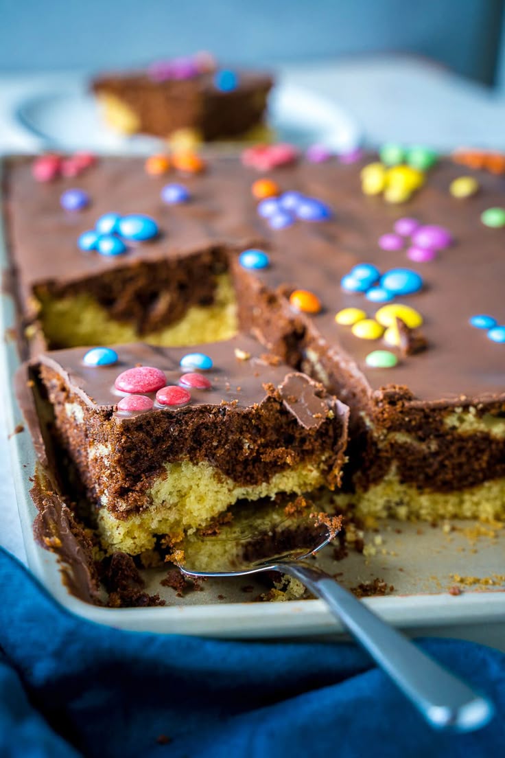 Marmorierter Blechkuchen mit bunten Smarties im Paw Patrol Look