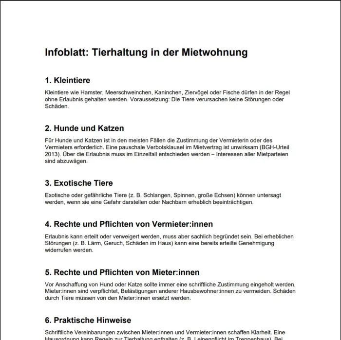 mietvertrag kleintiere ist ein Thema, das viele Mieter betrifft. Die Klärung von Fragen rund um haustierhaltung mietwohnung ist entscheidend für ein harmonisches Zusammenleben. Wenn Sie sich über die Haltung von schlange als haustier oder andere exotische Tiere informieren möchten, sollten Sie die Regelungen im Mietvertrag genau prüfen. Die Rechtslage bezüglich mietrecht haustiere kann komplex sein, daher ist eine fundierte Information wichtig. Die Auswahl von haustiere für die wohnung sollte daher stets unter Berücksichtigung der mietrechtlichen Bestimmungen erfolgen.