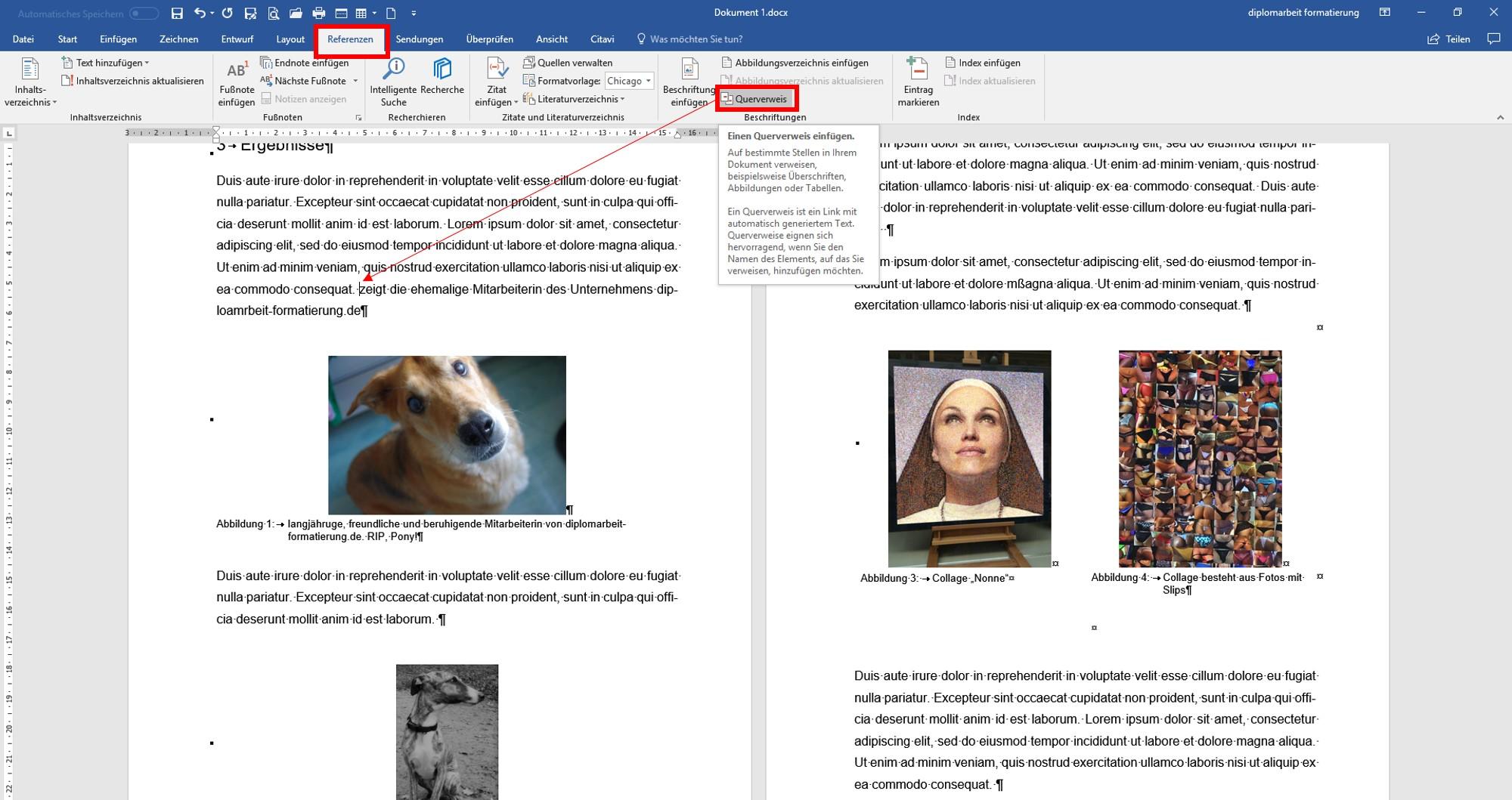 Ein Querverweis erlaubt es Ihnen, auf andere Teile desselben Dokuments zu verweisen. Dies kann beispielsweise nützlich sein, um auf eine Grafik oder eine Tabelle zu verweisen, die an anderer Stelle im Dokument erscheint. Der Querverweis wird als Link dargestellt, der den Leser direkt zum referenzierten Element führt. Wenn Sie einen Link zu einem separaten Dokument erstellen möchten, können Sie einen Hyperlink erstellen.