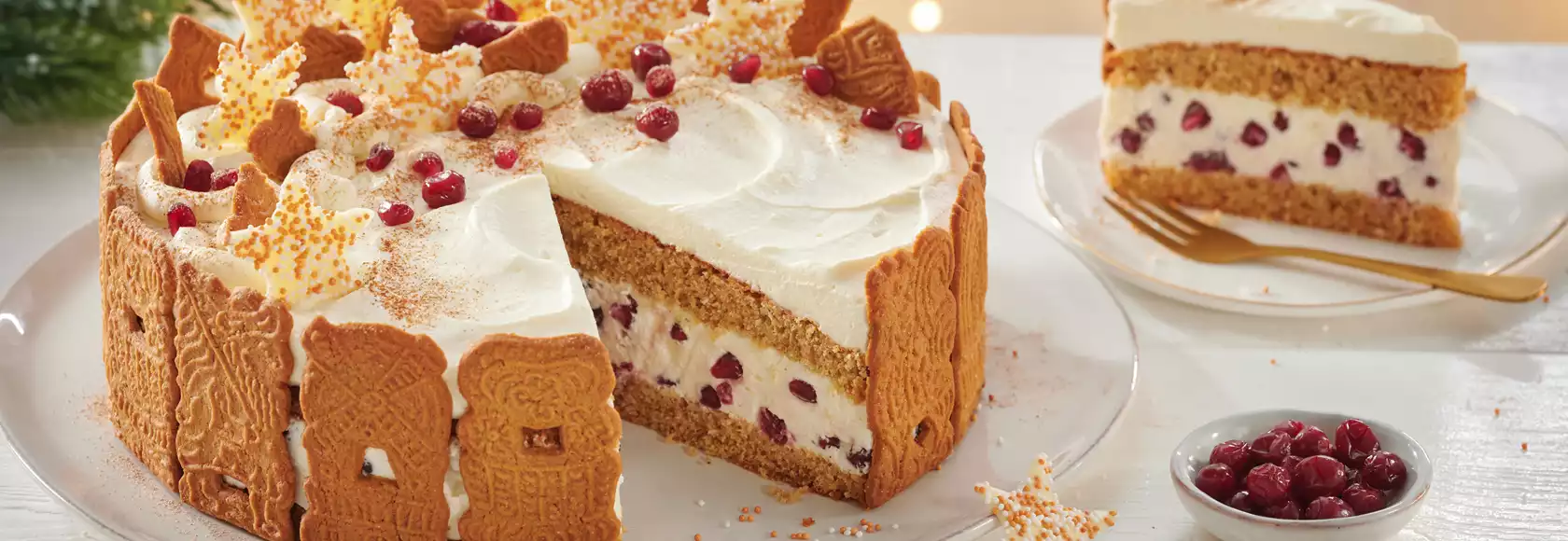 Die gekühlte Torte wird mit geschlagener Sahne eingestrichen, wobei die Oberfläche kreativ und “wild” gestaltet werden kann. Das vorbereitete Baiser wird anschließend in passende Stücke geteilt und kunstvoll auf der Sahne platziert. Kleine Lebkuchenhäuschen und ein Hauch von Puderzucker runden das winterliche Erscheinungsbild ab und machen diese Torte zu einem echten Hingucker auf jeder Festtagstafel.
