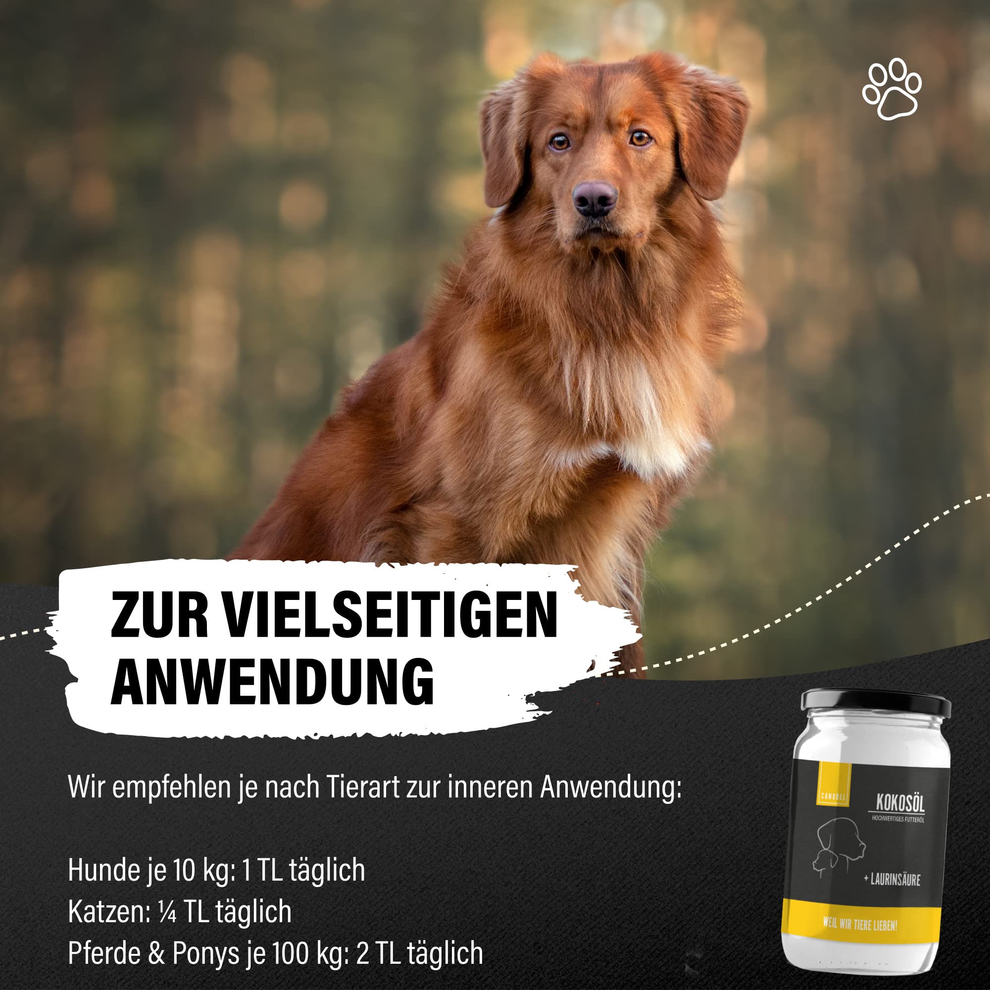 Bei der Pfotenpflege hilft eine kleine Menge Kokosöl, die Hundepfoten geschmeidig zu halten und rissigen, trockenen Ballen vorzubeugen. Insbesondere die Strapazen durch Streusalz und Kälte im Winter können so gemildert werden. Ein guter Zeitpunkt für die Anwendung ist oft am Abend, um dem Öl Zeit zum Einziehen zu geben und ein Ausrutschen zu vermeiden.
