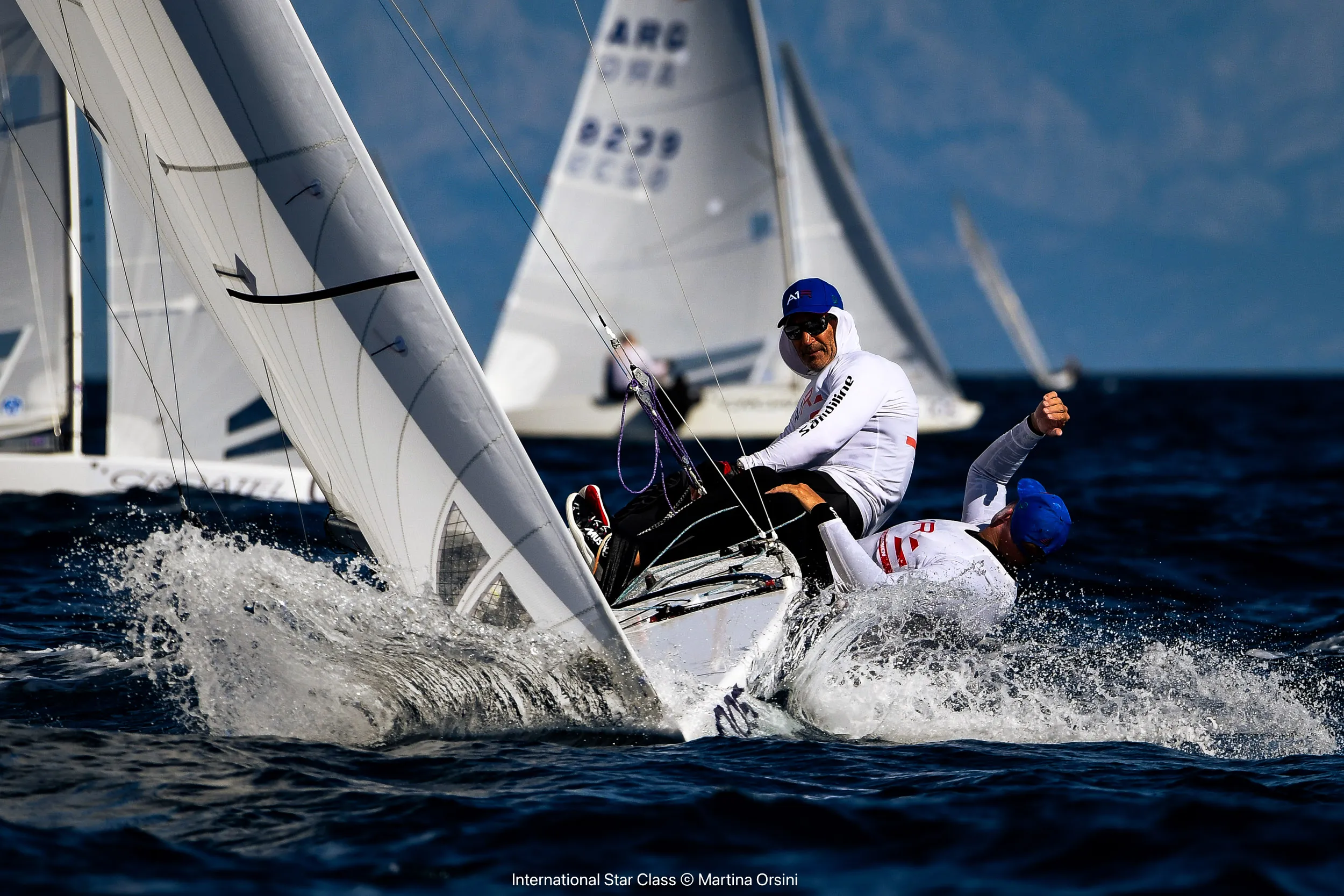 Doch das erfahrene Duo bewies seine Widerstandsfähigkeit und arbeitete sich im ersten Downwind-Abschnitt durch die Flotte, um den Abstand zu verringern. Sie wussten, dass sie die Anzahl der Boote zwischen sich und ihren engsten Rivalen begrenzen mussten: nicht mehr als 11 hinter Negri, 4 hinter Doyle und 7 hinter Kusznierewicz.