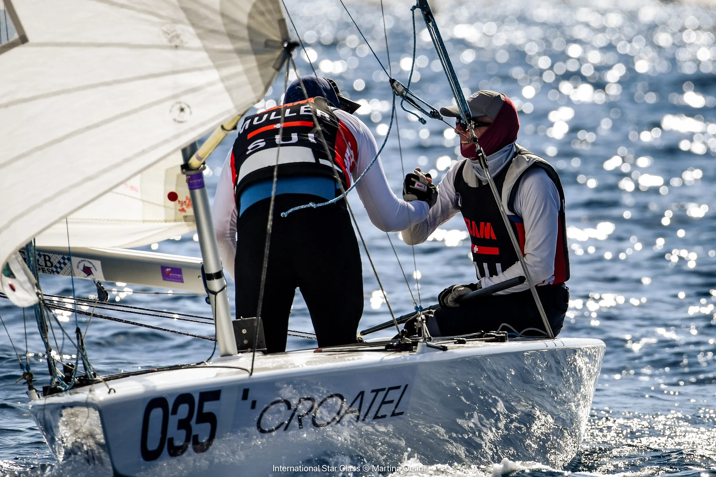 Auffällig war, dass viele der Gold Stars – ehemalige Weltmeister – bei den leichten und kabbeligen Bedingungen Schwierigkeiten hatten. Keiner der großen Namen schaffte es unter die Top 20 an der ersten Bahnmarke. Stattdessen setzten sich Urs Hunkeler und Ivan Müller (SUI) mit einer sauberen und schnellen Fahrt an die Spitze. Ihre Führung bauten sie im ersten Downwind-Abschnitt weiter aus. Das erfahrene Duo Paul Cayard mit Frithjof Kleen (USA/GER) sowie Diego Negri mit Sergio Lambertenghi (ITA) begannen ihren Aufstieg und rundeten in den Top 15. Hunkeler und Müller überquerten die Ziellinie schließlich als Erste, gefolgt vom Silver Star-Team Piet Eckert und Frederico Melo (SUI/POR) auf Platz zwei und Ante Razmilovic mit Brian Hammersley (GBR) auf Rang drei. Ein vielversprechender Start für die Schweizer bei der Segel-WM Kroatien.