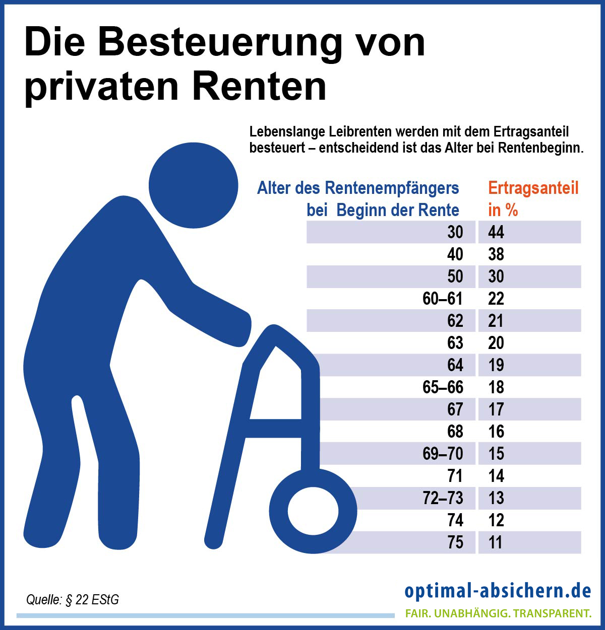 | Rentenbeginn mit dem … Lebensjahr | Ertragsanteil (Prozent) |