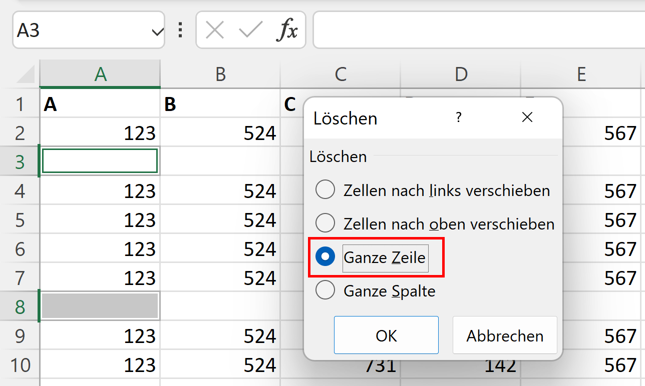 Durch diesen Prozess werden alle Zeilen, die eine als leer erkannte Zelle enthalten, vollständig aus Ihrer Tabelle entfernt.