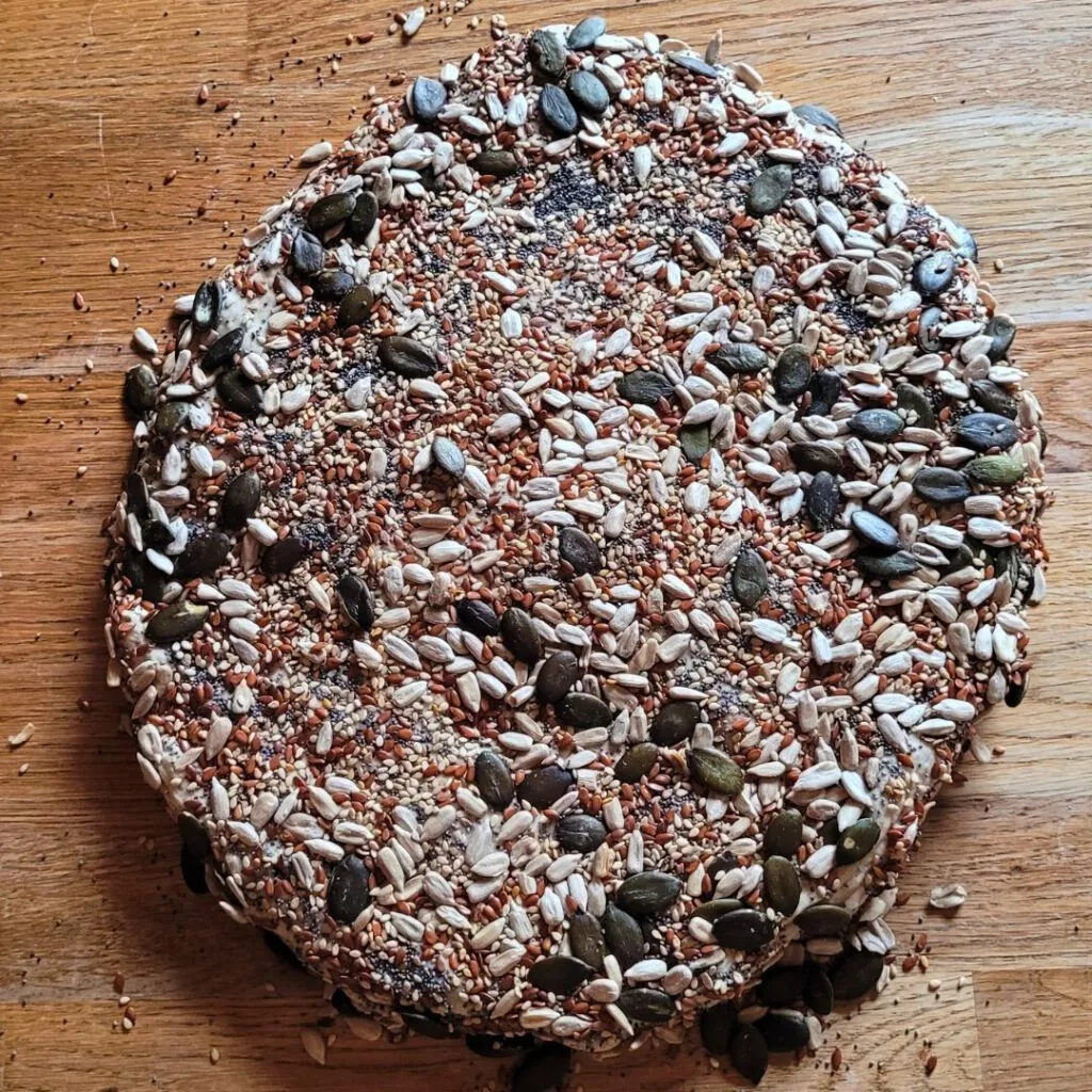 - Körnermischung für die Kruste (z.B. Sonnenblumenkerne, Mohn, Sesam und Leinsamen)
