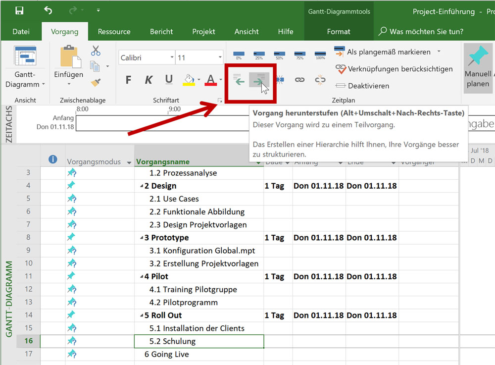 - Klicken Sie in den Abschnitt oder wählen Sie die Abschnitte aus, für die Sie Zeilennummern hinzufügen möchten.