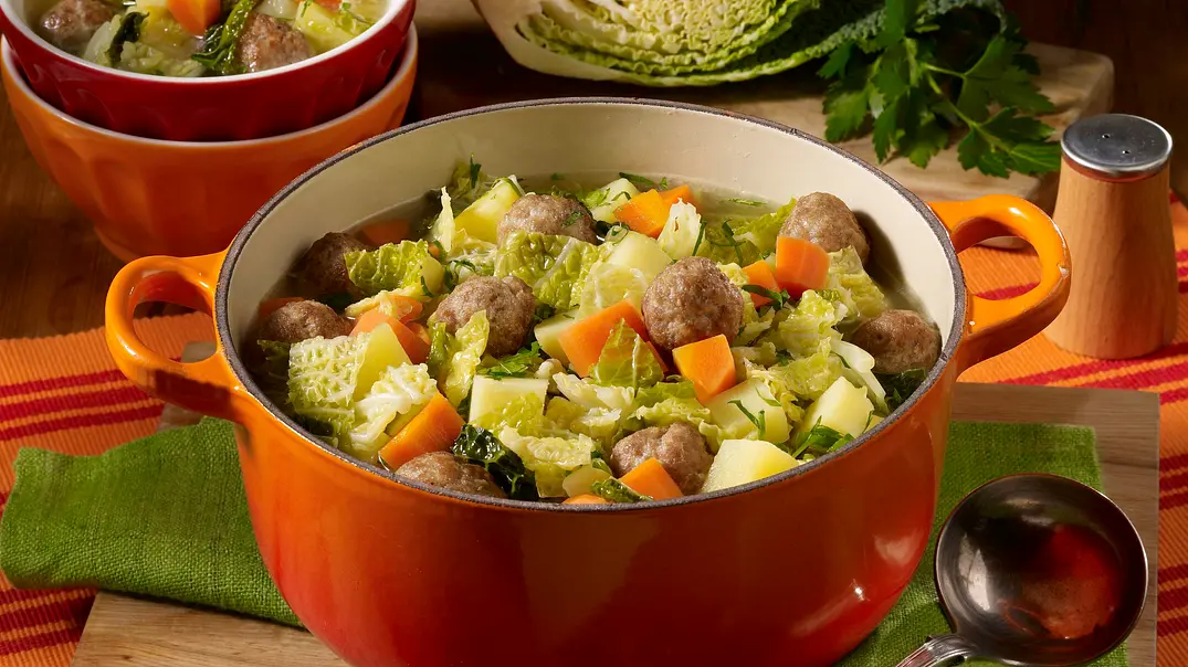 Dieser Bauerntopf ist ein hervorragender Kandidat für eine vegetarische Variante. Lassen Sie einfach das Fleisch weg und setzen Sie stattdessen auf eine kräftige Gemüsebrühe. Geräucherte Paprika oder ein Löffel Tomatenmark können zusätzliche Tiefe verleihen. Auch die Wahl des Gemüses ist flexibel. Neben Kartoffeln und Möhren passen auch Erbsen, grüne Bohnen oder Kohlrabi hervorragend hinein. Wer es besonders cremig mag, kann am Ende einen Schuss Sahne oder einen Klecks saure Sahne unterrühren. Dazu passt frisches Brot oder ein Klecks Kräuterquark.