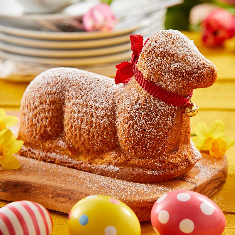- Lassen Sie das Lamm nach dem Backen etwa 10 Minuten in der Form abkühlen, bevor Sie es vorsichtig auf ein Kuchengitter stürzen, um vollständig auszukühlen.