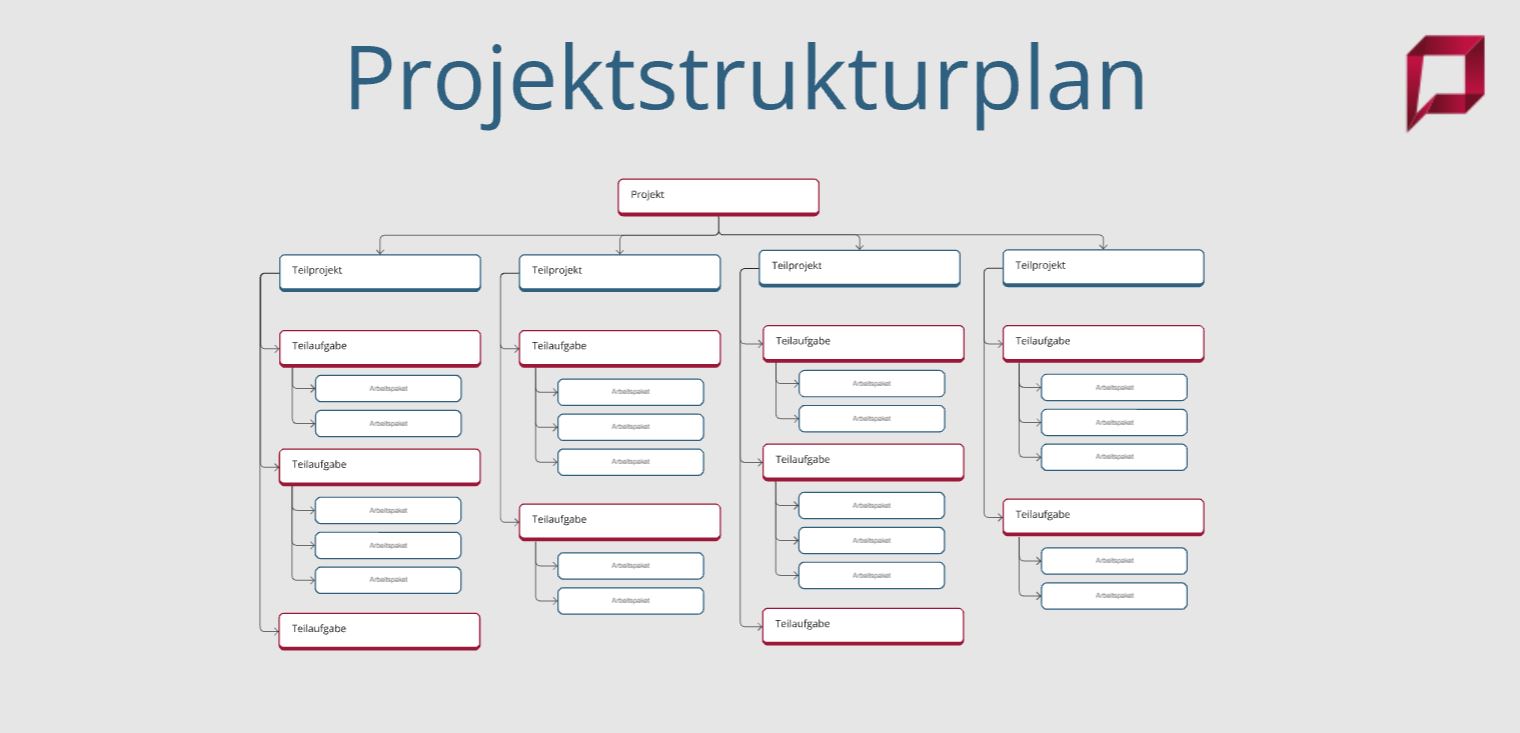 Eine Projektstrukturplan-Vorlage bietet eine klare Methode, um alle Lieferobjekte eines Projekts sowie die notwendigen Aufgaben und Teilaufgaben zur deren Fertigstellung zu visualisieren. Sie bildet das zentrale Element, um den Projektumfang in überschaubare Einheiten zu unterteilen und die Arbeit somit effektiv managebar zu gestalten. Laut dem Project Management Body of Knowledge (PMBOK 5) ist ein PSP eine “hierarchische Zerlegung des gesamten Arbeitsumfangs, der vom Projektteam zur Erreichung der Projektziele und zur Erstellung der erforderlichen Lieferobjekte durchgeführt werden muss”.
