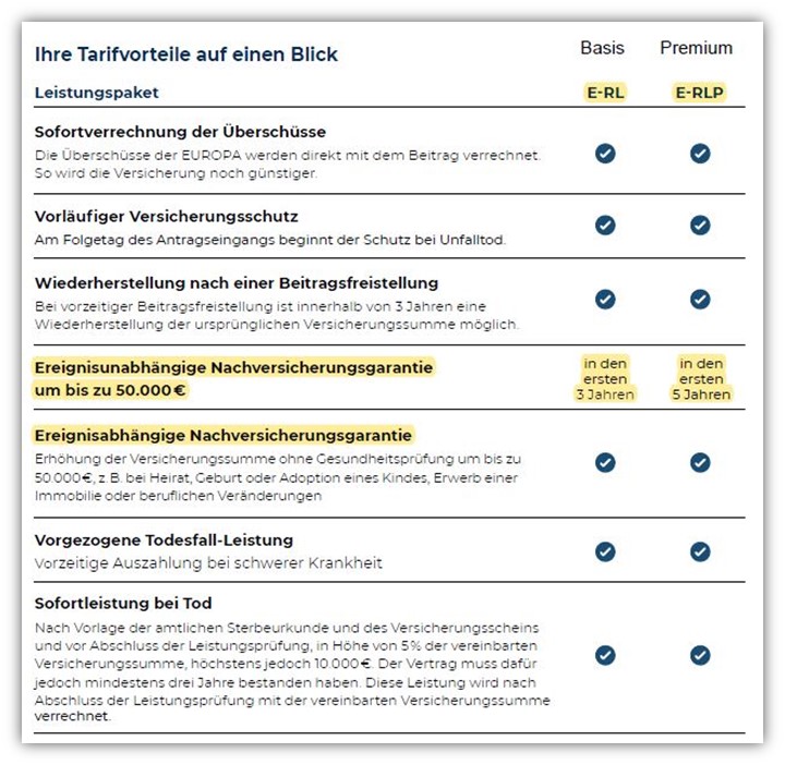 „Als Extraleistung locken die Premiumtarife unter anderem mit einer vorgezogenen Todesfallleistung […] Alle Basistarife im Test bieten ausreichend Schutz.“ (S. 85, Finanztest 2/2023)