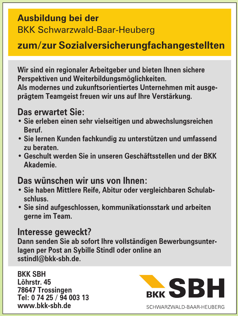 Die BKK SBH bietet spannende Ausbildungsmöglichkeiten für junge Talente, die eine Karriere im Gesundheitswesen anstreben. Mit einem klaren Fokus auf praxisorientiertes Lernen und individueller Förderung, legt die BKK SBH den Grundstein für eine erfolgreiche berufliche Laufbahn ihrer Auszubildenden. Entdecke, warum eine Ausbildung bei der BKK SBH die richtige Wahl für dich sein könnte.