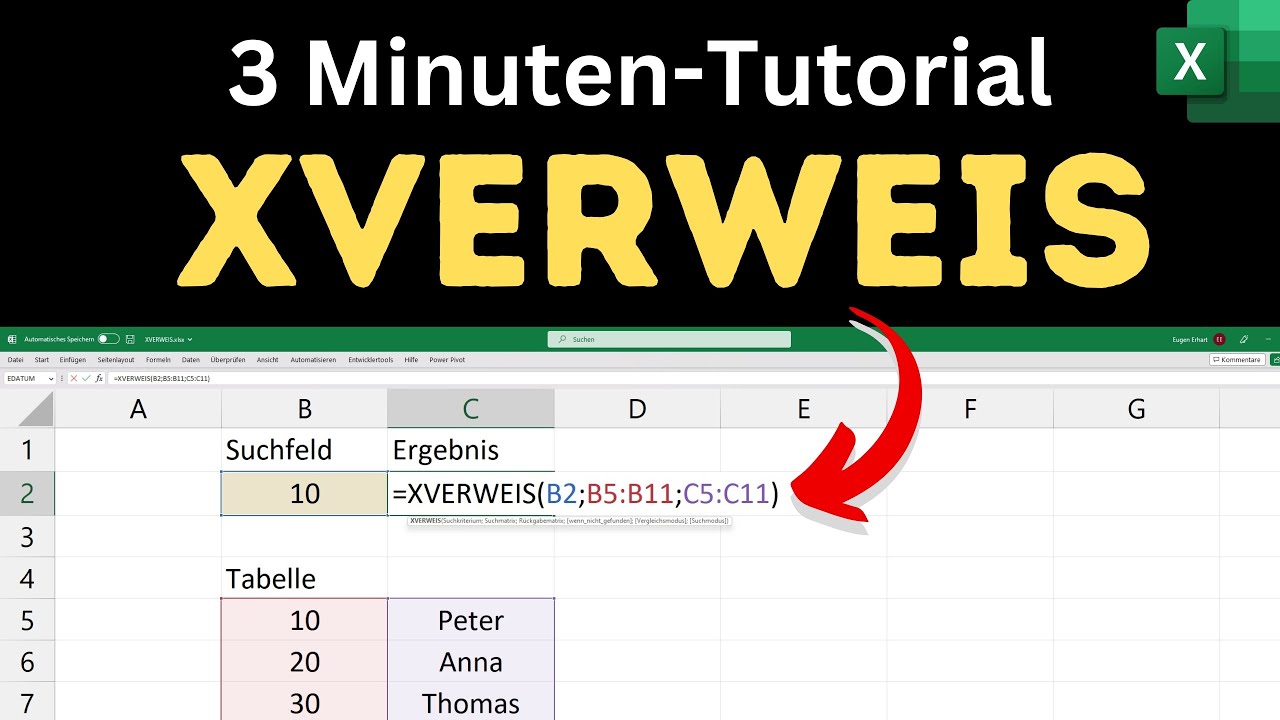 Die XVERWEIS Funktion in Excel revolutioniert die Art und Weise, wie Sie Daten in Tabellen suchen und abrufen. Sie ist eine moderne und flexible Alternative zu älteren Funktionen wie SVERWEIS und ermöglicht Ihnen, Elemente anhand von Suchkriterien in einem Bereich zu finden und entsprechende Werte aus einem anderen Bereich zurückzugeben. Dies ist besonders nützlich, wenn Sie beispielsweise Preise anhand von Artikelnummern oder Mitarbeiterdetails anhand von IDs suchen müssen. XVERWEIS durchsucht eine Spalte nach einem bestimmten Wert und gibt ein Ergebnis aus derselben Zeile in einer anderen Spalte zurück, wobei die relative Position der Spalten keine Rolle spielt.