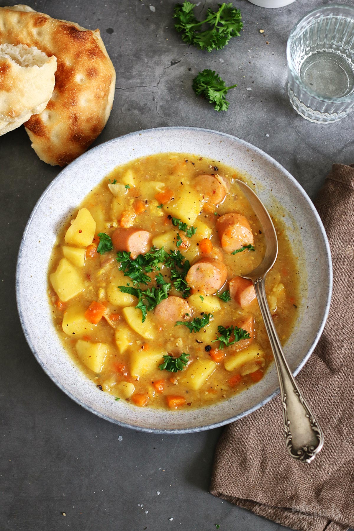 Die Zubereitung eines perfekten Eintopfs ist denkbar einfach, erfordert aber ein gewisses Verständnis für die Garzeiten der einzelnen Zutaten. Mein Tipp: Zutaten, die länger benötigen, wie z.B. härteres Gemüse oder Hülsenfrüchte, sollten zuerst in den Topf kommen. Erst danach fügst du die schneller garenden Komponenten hinzu. So stellst du sicher, dass alles die perfekte Konsistenz erreicht – weich, aber nicht verkocht. Feste Zutaten schneide ich gerne etwas kleiner oder dünner, um auch hier die Garzeit zu optimieren. Robuste Beilagen wie Wurzelgemüse oder Fleisch schwitze ich bei höherer Hitze mit etwas Öl an, bevor die Flüssigkeit hinzugegeben wird. Wichtig ist dabei, dass keine unerwünschten Röststoffe entstehen. Falls doch, hilft es, die Suppe kurz mit etwas Flüssigkeit abzulöschen. Der Begriff “Eintopf” wird heutzutage übrigens immer häufiger durch “Onepot” oder “One Pot” ersetzt – eine treffende Beschreibung, da wirklich alles in einem einzigen Topf zubereitet wird. Egal, wie man es nennt, Eintopfrezepte sind unschlagbar praktisch und schmecken einfach immer.