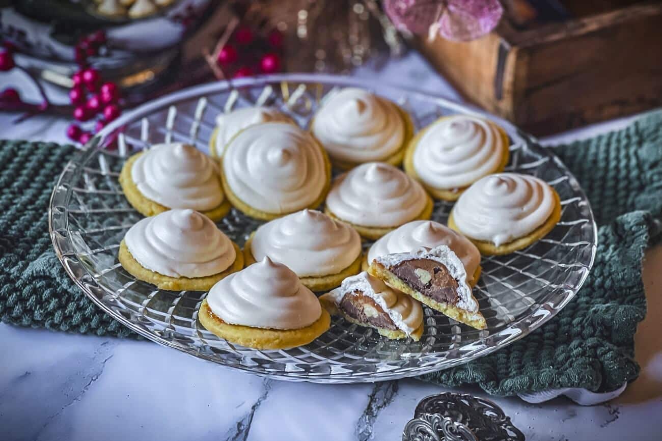 Feenküsse, oder wie manche sie liebevoll nennen, Feenküsschen, sind für mich untrennbar mit dem Glanz und Duft der Weihnachtszeit verbunden. Diese zarten Plätzchen, die auf einem Mürbeteigboden thronen und von einer luftigen Baiserhaube gekrönt werden, sind ein absolutes Muss auf jedem Weihnachtsteller. Sobald sie im Ofen langsam ihre goldbraune Farbe annehmen und ein unwiderstehlicher Duft von frisch gebackenem Mürbeteig und süßem Karamell die Küche erfüllt, stellt sich ein Gefühl von Magie ein, das nur die Vorweihnachtszeit mit sich bringt. Jedes Jahr freue ich mich darauf, diese kleinen Kunstwerke gemeinsam mit meinen Kindern zu backen. Sie sind für uns die ganz besonderen Plätzchen, die wir für die gemütlichen Adventssonntage und die festlichen Weihnachtsteller reservieren. Mit ihrer außenliegenden Knusprigkeit, der weichen Mitte und der kleinen süßen Überraschung unter der Baiserhaube sind sie etwas wahrhaft Besonderes. Ehrlich gesagt, verschwinden sie bei uns vom Teller schneller als jedes andere Weihnachtsplätzchen!