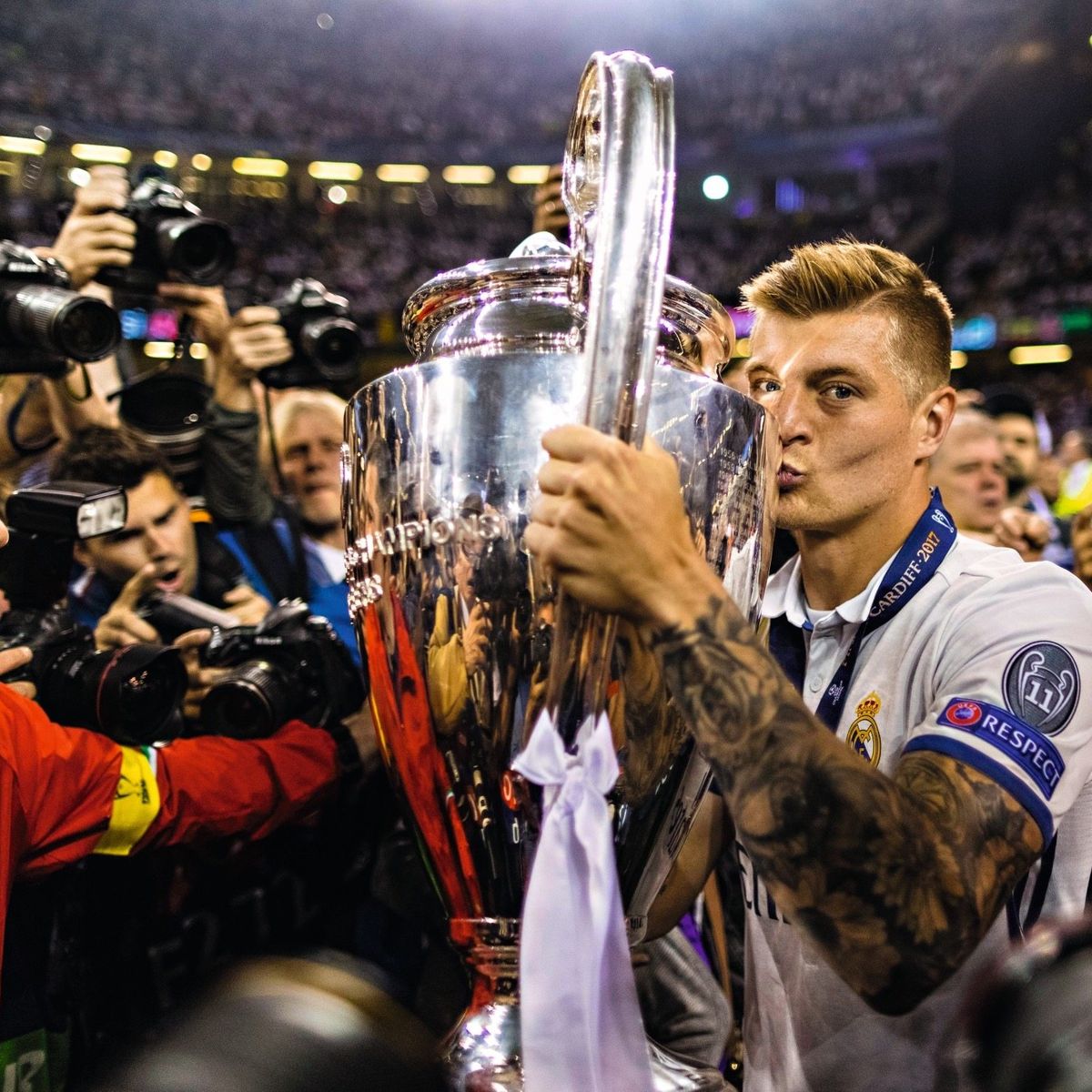 Toni Kroos hat mit Real Madrid fünfmal die UEFA Champions League gewonnen.