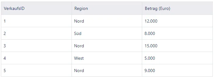In diesem Szenario würden die Verkäufe mit den IDs 1 und 3 gezählt werden, da sie beide in der Region “Nord” liegen und einen Betrag von über 10.000 Euro aufweisen.